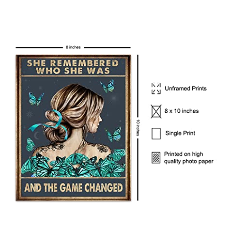 Amazon Com She Remembered Who She Was And The Game Changed Positive Quotes Wall Decor Uplifting Inspirational Encouragement Gifts For Women Teen Girls Motivational Wall Art Tiffany Blue Boho